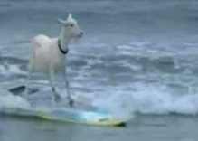 Una cabra se ha convertido en noticia por haber aprendido a usar la tabla en el mar de California en los Estados Unidos.