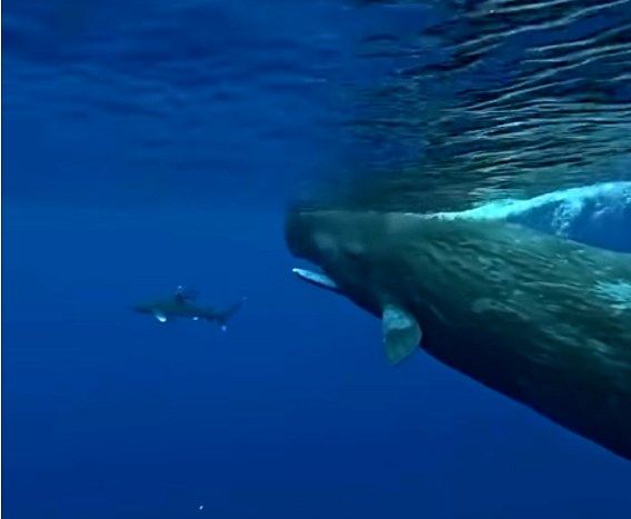 Dos cachalotes protegieron a un buzo que se había zambullido en la costa de Mauricio cuando se le acercó un tiburón blanco oceánico, una especie conocida por su agresión.