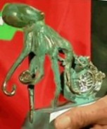 El célebre pulpo Paul del acuario Sea Life de Oberhausen recibió la visita del alcalde de O Carballiño, quien viajó a Alemania y lo declaró “Amigo predilecto” y e entregó una placa de plata y una estatua.