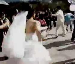 La novia peleó inclusive con puños por su pareja e intentó perseguirlos, pero finalmente la dejó plantada para correr con el homosexual.