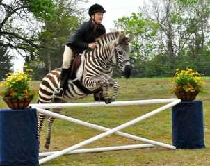 La jinete explicó que se dio cuenta de la habilidad de Zack, su cebra macho de seis años, cuando saltó una valla, por lo que tuvieron que hacer otra más alta.