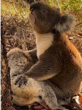 Una persona llamó a los rescatistas para reportar un koala en el suelo, pero ya estaba sin vida. Era una hembra y el macho adulto la abrazaba.