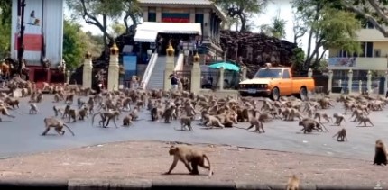 La pandemia del coronavirus de Wuhan o COVID-19 determinó una retirada casi total de los turistas en Tailandia, lo cual ha dejado hambrientos a centenares de monos que estaban acostumbrados que los viajeros les lancen comida.