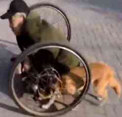 Un perro que ayuda a movilizarse a su dueño, un mendigo discapacitado, causa sensación en Youtube, donde se le ve echar a andar por las calles un precario armazón con ruedas.