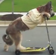 El la grabación se le ve dominando bien el patinete e impulsándose con una pata para avanzar como si fuese una persona.