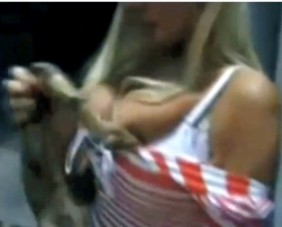 Una modelo hacía alarde de su dominio sobre una serpiente, provocándola, cogiéndola y acercándola a su cuerpo, simulando quererla besar, para finalmente ser mordida en un seno.