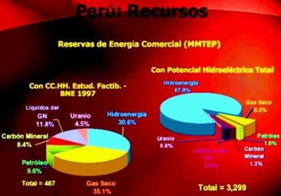 En el cuadro se aprecia la composición de las reservas de energía en el Perú, donde se ve la importancia de la energía hidroeléctrica.