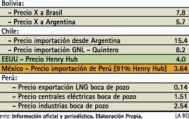 En EE. UU., rige el precio Henry Hub, que actualmente está en US$ 4.0 por mpc (cuando el precio del petróleo estaba alto llegó a costar US$ 9 a 10 por mpc). En México también rige el Henry Hub. En el caso de la importación de Perú, Repsol ofreció que vendería nuestro gas al 91% del precio Henry Hub. Por tanto, México pagaría hoy a Repsol la suma de US$ 3.64/mpc.