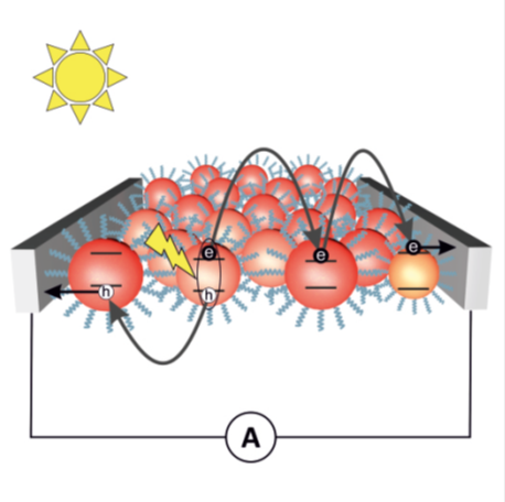 Los nanocristales semiconductores (puntos cuánticos) es un material nanohíbrido creado por los científicos de la MEPhI que está cubiertos con ligandos, moléculas orgánicas que impiden que los puntos cuánticos se peguen. Por eso los puntos cuánticos conservan sus ‘características individuales’ formando un medio continuo, lo que hace posible el paso de la corriente eléctrica. Esta conductividad se caracteriza por saltos electrónicos, como semiconductores orgánicos, donde los saltos de los electrones no se producen entre moléculas orgánicas, sino entre los puntos cuánticos.