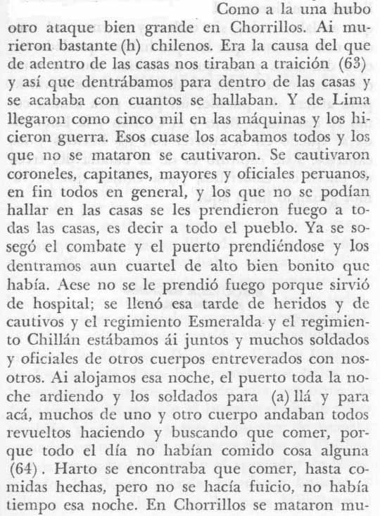 Cabo chileno del Regimiento Chillán relata Holocausto de Chorrillos