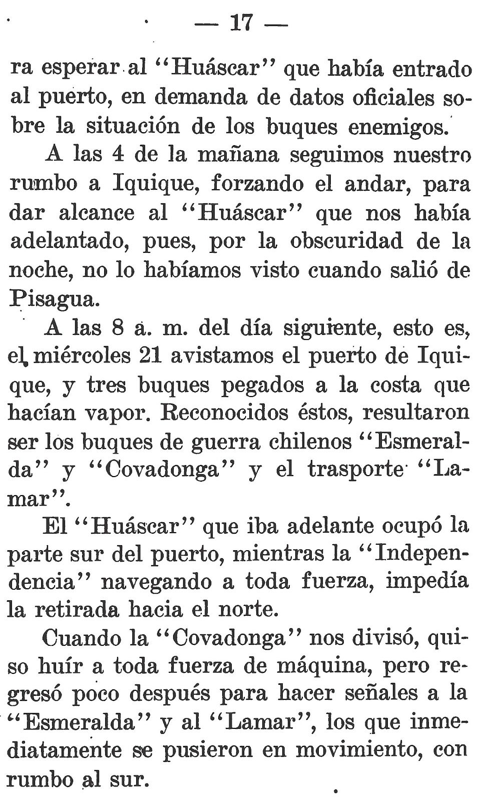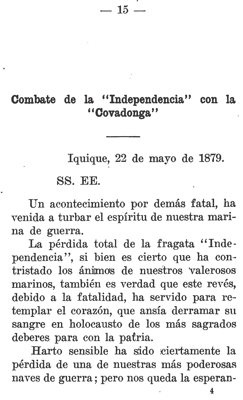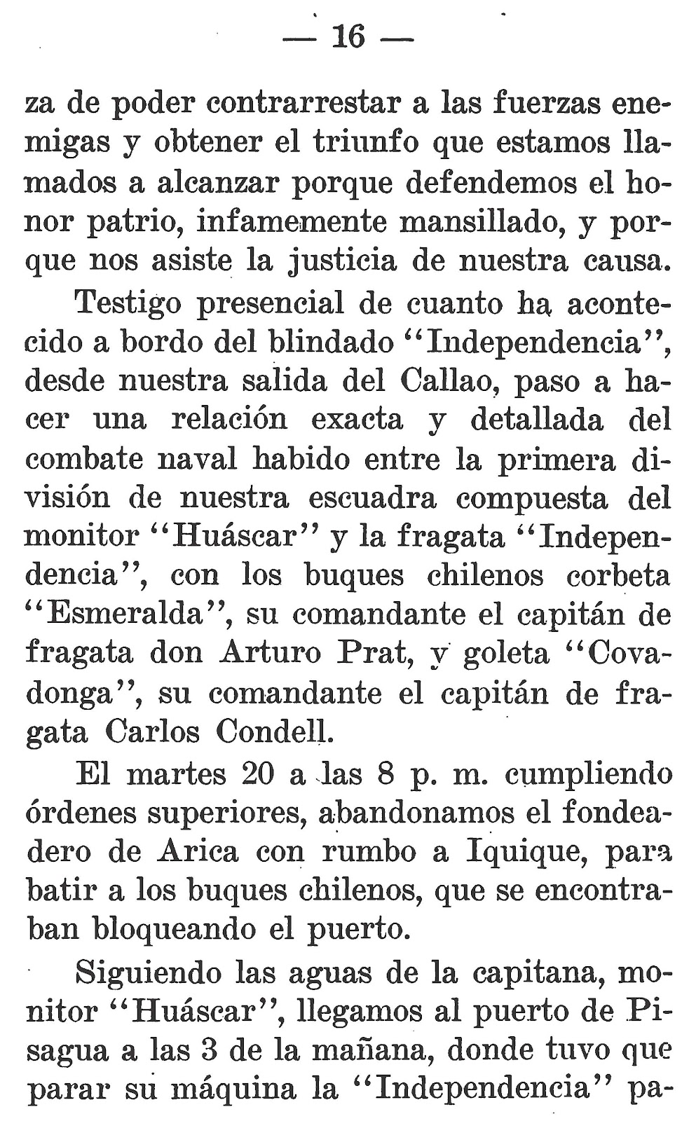 Del Campo, José Rodolfo. 1920. Campaña Naval. Correspondencias a “El Comercio”. Año de 1879. Lima: Librería e Imprenta Gil, pp. 15-28.