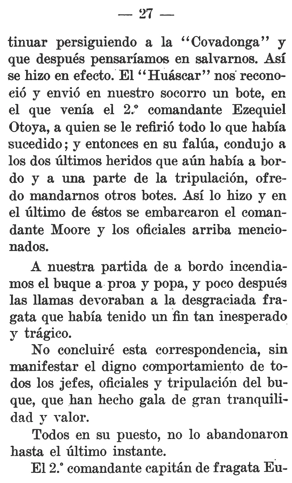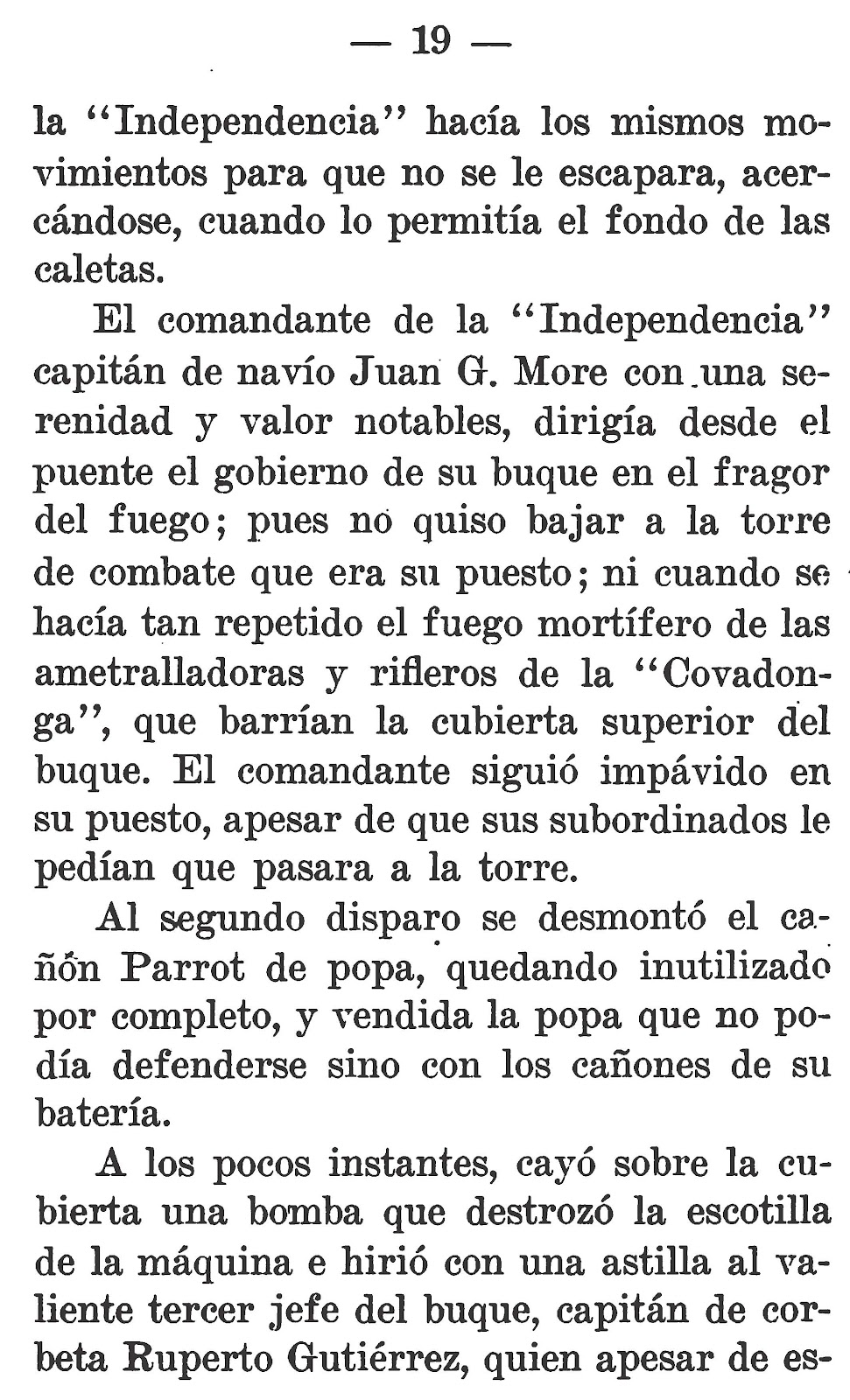 El despacho que aparece a continuación fue publicado en “El Comercio” de Lima, el 29 de mayo de 1879. El desastre de Iquique fue consecuencia de la falta de preparación de los marineros y artilleros de la fragata peruana, hecho que fue denunciado por Grau y el propio comandante de la “Independencia” , Juan Guillermo More, desde antes de iniciada la campaña naval.