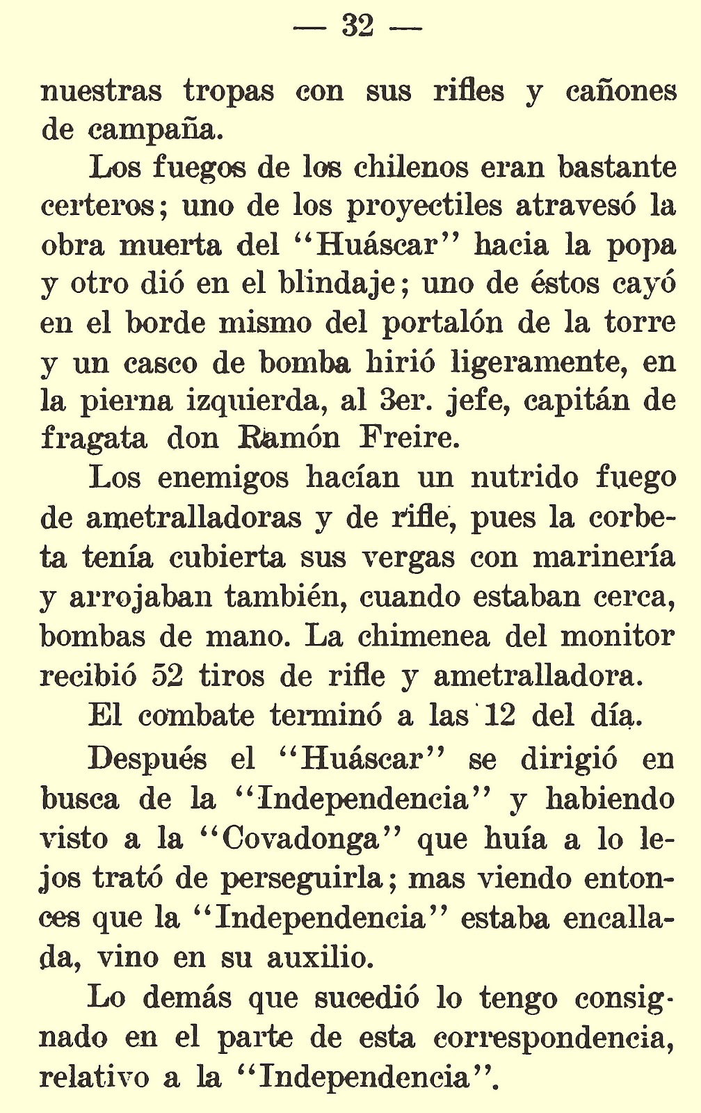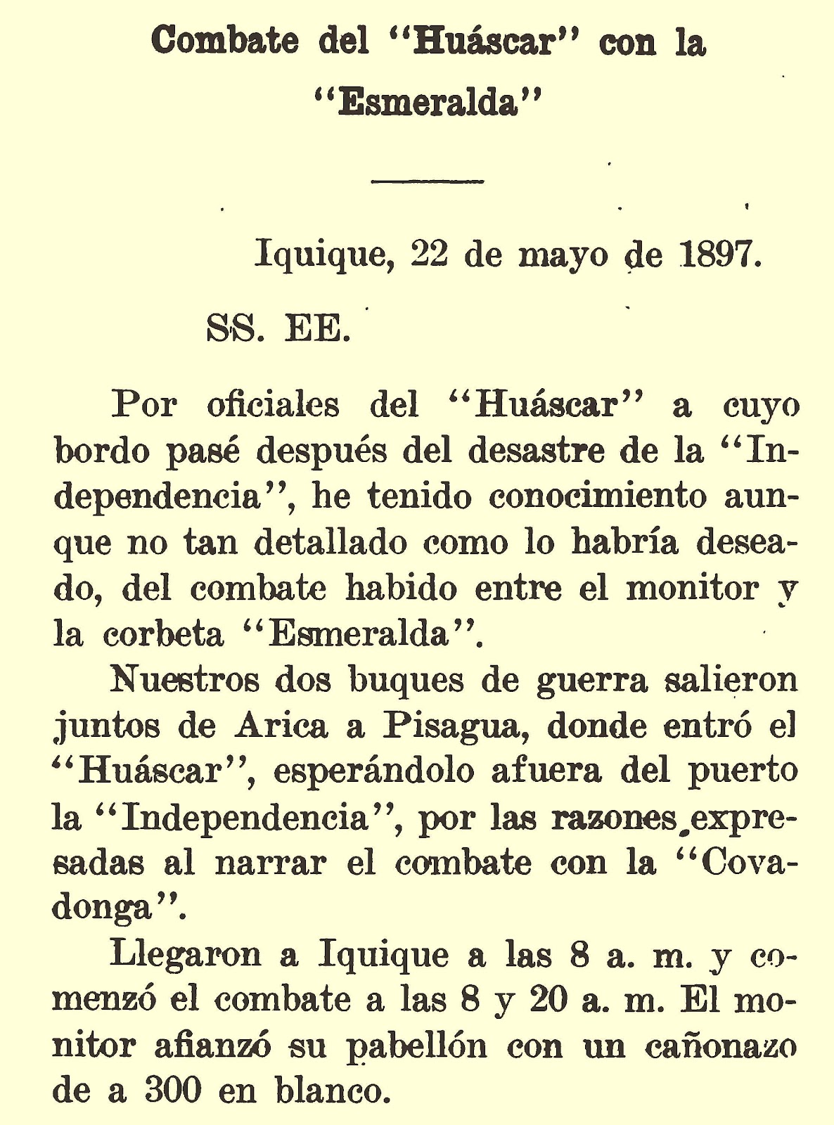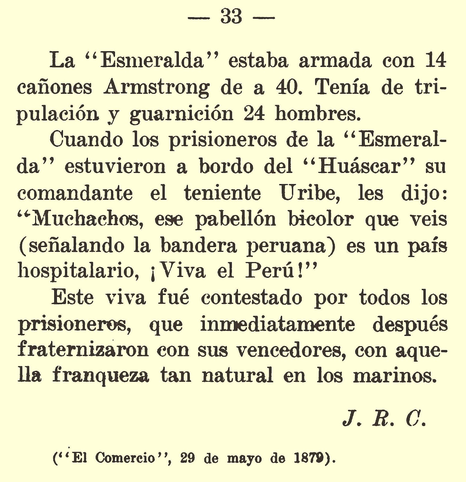 Obra consultada: Del Campo, José Rodolfo. 1920. Campaña Naval. Correspondencias a “El Comercio”. Año de 1879. Lima: Librería e Imprenta Gil, páginas 29-33.