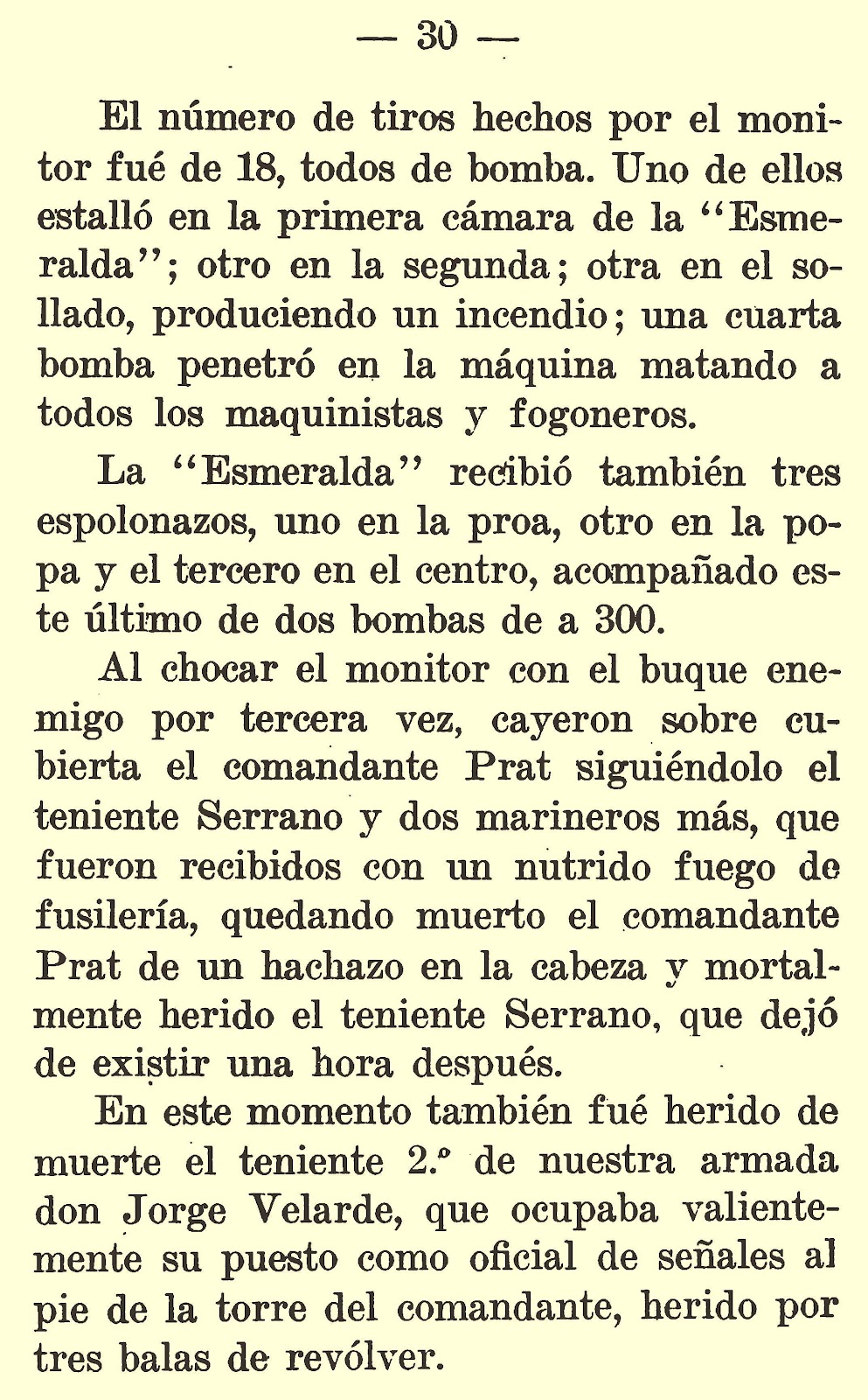 el teniente jorge velarde fue asesinado por arturo prat y este a su vez asesinado en el huascar, que mas reclama?, era una guerra y esas cosas suelen suceder en las guerras, que la gente se dispare unos a otros