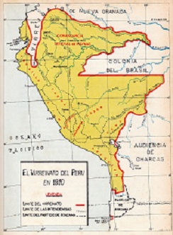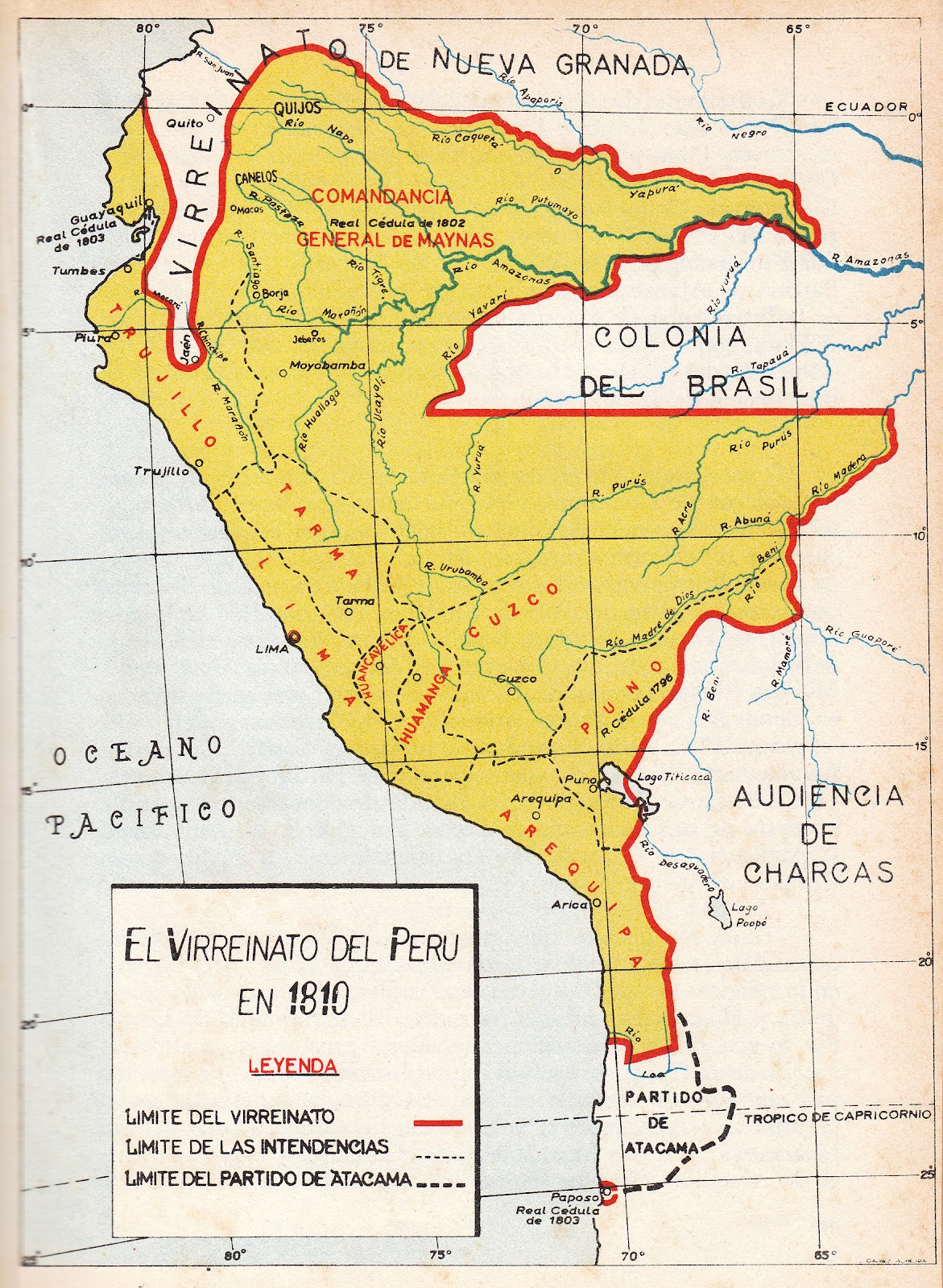 El Virreinato de Lima en 1810, con la transferencia del Paposo al Perú