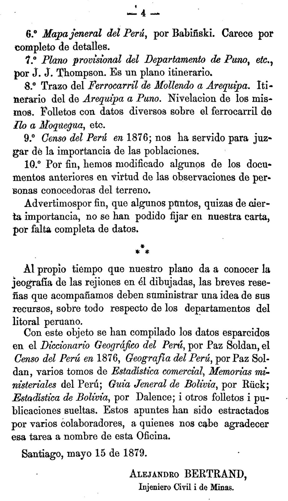 Explícitamente lo reconoció el ingeniero Alejandro Bertrand, responsable de coordinar la confección del documento que comentamos. Bertrand escribió en la página 2 del opúsculo: “El plano que damos a la publicidad comprende no sólo las comarcas que pueden ser teatro de la guerra en que Chile está hoy empeñado, sino también las regiones que tienen que recorrer las fuerzas bolivianas que se concentren sobre el litoral al norte de la Quebrada de Camarones.”