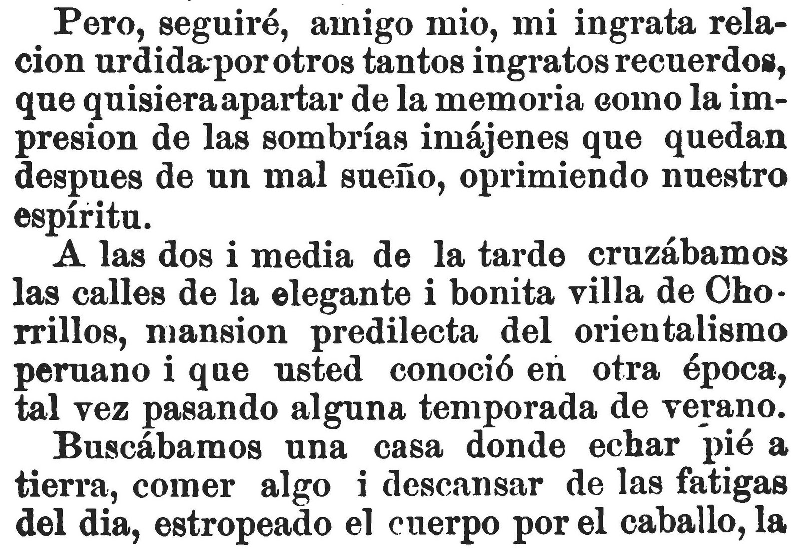 El relato de Vicuña continúa: “El desorden de Chorrillos había llegado al máximum del desborde y la desmoralización, convirtiéndose en la más tremenda y sangrienta bacanal. El saqueo y la borrachera, el incendio y la sangre, formaban los cuadros de aquel horrible drama. ¿Entraré a hacerle una relación detallada de los mil episodios que al día siguiente se referían y de los cuales yo presencié algunos? No, de ninguna manera. No quiero llevar a su espíritu la lobreguez de aquella aciaga noche, alumbrada sin embargo por las llamas de doscientas casas que ardían como otros tantos inmensos mecheros. No quiero yo tampoco oprimir mi alma repasando en la memoria lo que una vez vi, dejándome una impresión que sólo el tiempo irá borrando muy lentamente”.