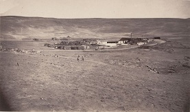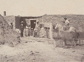 Trabajadores salitreros en sus viviendas ubicadas cerca de Iquique, Tarapacá, 1863.