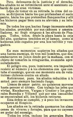 Despues de leer la historia peruana. estoy seguro que la guerra la ganaron los peruanos. No puede ser que un ejercito asi. con tanta gallardia. Si llega a dar miedo. Como los engañan y lo peor es que como son tarados. No se hacen preguntas Hay por dios que raza que raza. De lo peor que hay mentirosos envidiosos cobardes. Traicioneros o el dicho que el peor enemigo de un peruano es otro peruano. Por dios que raza mas. Mejor no pongo lo que pienso. Por los peruanos desentes.