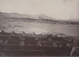 Viviendas de los trabajadores de las salitreras de Pampa de Tamarugal, Tarapacá, Perú, 1863.