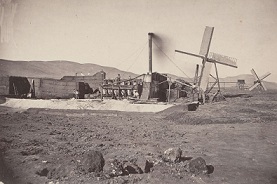 Salitrera de Pampa de Tamarugal, con molinos, Tarapacá, Perú, 1863.