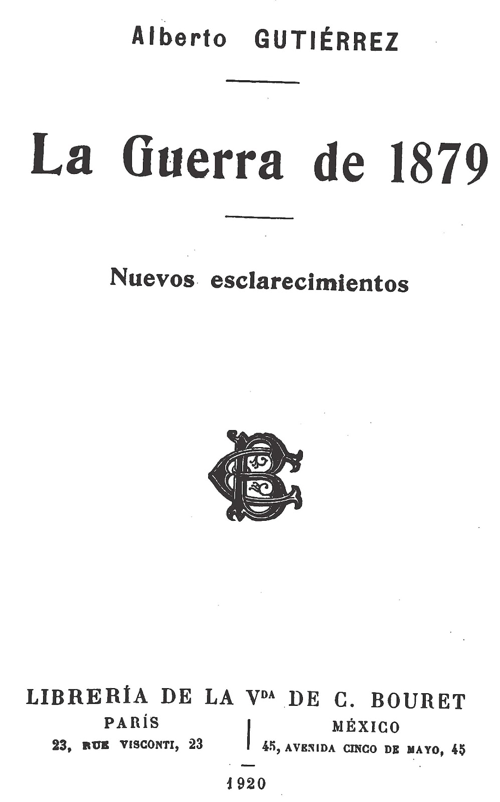 Alberto Gutiérrez. 1920. La Guerra de 1879: Nuevos esclarecimientos. París: Librería de la Viuda de C. Bouret. páginas 208-209.