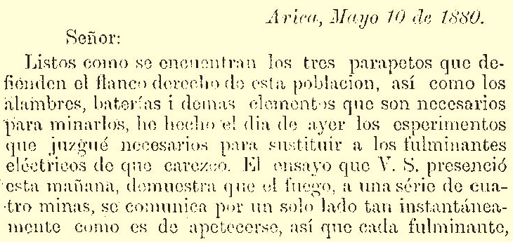 Fuente: Ahumada Moreno, Pascual. 1886. Guerra del Pacífico. Recopilación completa de todos los documentos oficiales, correspondencias y demás publicaciones referentes a la guerra que ha dado a luz la prensa de Chile, Perú y Bolivia, conteniendo documentos inéditos de importancia. Valparaíso: Imprenta y Librería Americana, Tomo III, página 226.