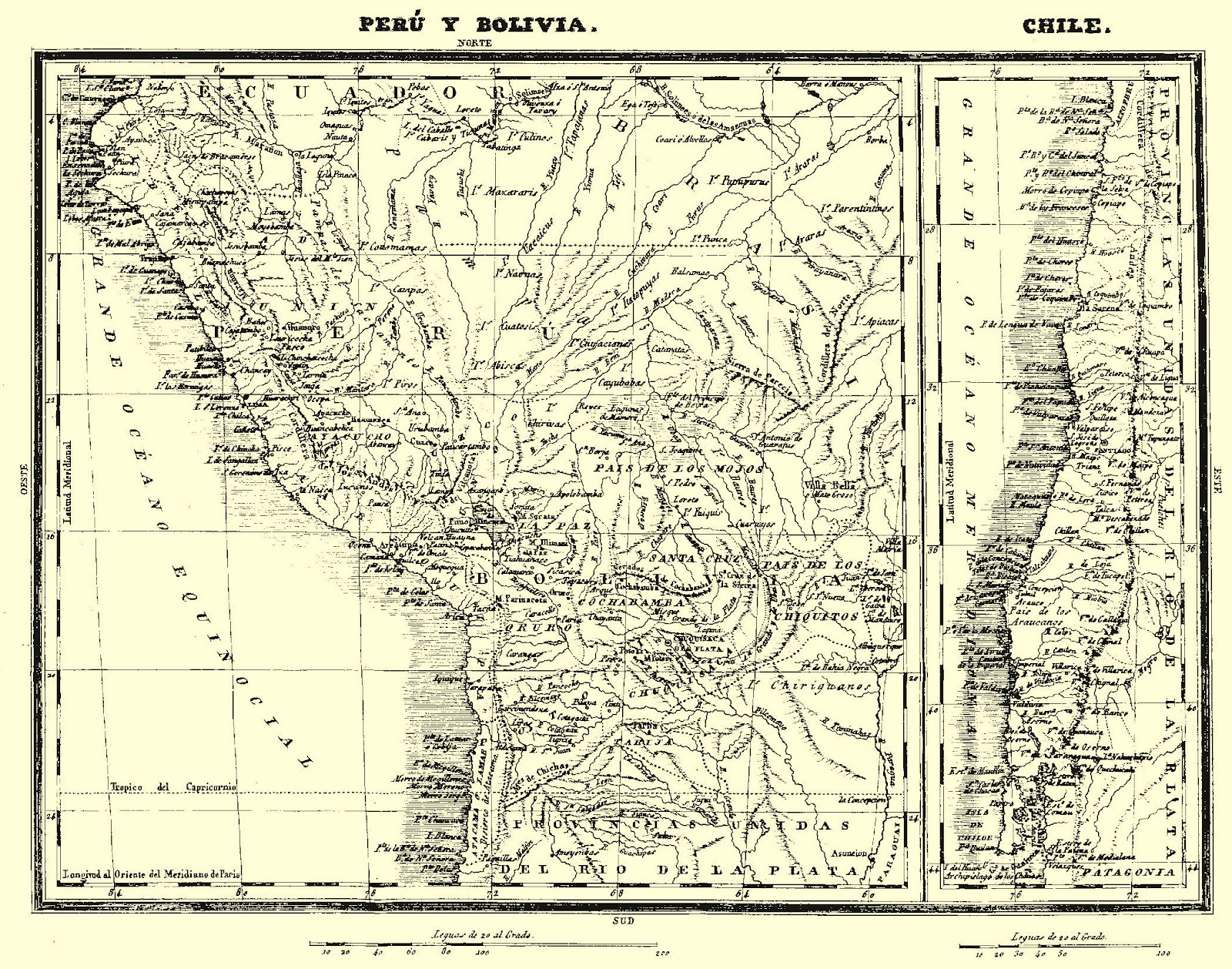 Fuente del mapa: Sánchez de Bustamante, D. A. 1843. Geografía del Perú, Bolivia y Chile para uso de los colegios y escuelas de las tres repúblicas. Adornada con un mapa. Madrid: Librería de la Señora Viuda de Calleja e Hijos.