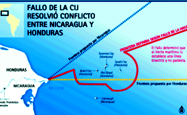 La Corte Internacional de La Haya falló fijando la línea bisectriz como los nuevos límites marítimos entre Honduras y Nicaragua, tras seguirse una disputa presentada ante ese tribunal desde 1999, cuando Nicaragua presentó su demanda.
