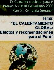 Hasta el 30 de setiembre se pueden presentar los trabajos periodísticos para el IV Concurso Nacional para el Premio Anual al Periodismo 2008 “Ramón Remolina Serrano”, que organiza la Cámara de Comercio de Lima, con el auspicio de Coca Servicios del Perú S.A.