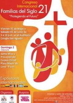 La Vicaría Episcopal de Familia y Defensa de la Vida del Arzobispado de Lima invita a todos los fieles al Congreso Internacional «Familias del siglo 21: protegiendo el futuro», que se llevará a cabo del viernes 31 al sábado 1 de junio.