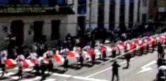 Una inmensa bandera nacional fue llevada por decenas de mujeres, precedidas por un grupo de 50 niñas vestidas de blanco, cada una con una bandera, representando los 50 años de resistencia al enemigo que incluso llegó a matar a los maestros que enseñaban la Historia del Perú. Los soldados chilenos también obligaban a los escolares a ver los cadáveres de los patriotas asesinados.