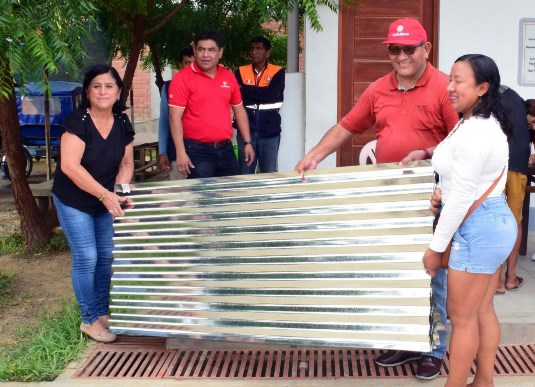 Las familias beneficiadas corresponden a diferentes zonas vulnerables de Sullana como el A.H Villa Primavera, A.H 9 de Octubre, A.H Sánchez Cerro, A.H 15 de Marzo, A.H Juan Velasco Alvarado, A.H Zapata Silva, A.H Santa Teresita, A.H Jesús María, A.H. Villa La Paz, Barrio Norte, A.H El Obrero, Sector Nuevo Horizonte, Centro Poblado Chalacalá Baja, Centro Poblado Nuevo Progreso, Centro Poblado San Vicente Piedra Rodada; Urbanización La Videnita y Urbanización Los Olivos. Asimismo, las familias damnificadas recibieron de Caja Sullana 10 calaminas, mientras que las afectadas dos calaminas más una bolsa de víveres.