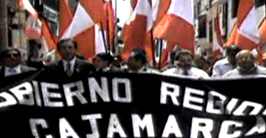 Una apretada muchedumbre participó en la marcha contra el proyecto Conga en Cajamarca, encabezada por el Presidente Regional y otros dirigentes, la cual se desarrolló en forma pacífica.