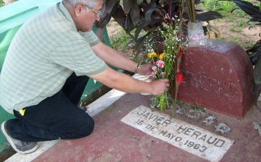 Visita a la tumba de Javier Heraud en viaje realizado a Puerto Maldonado el 24 de febrero de 2008 (desde el 2 de mayo de 20008 sus restos fueron traidos a Lima por su familia).