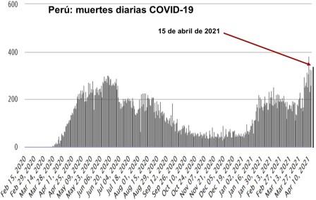 En las últimas 24 horas perecieron 337 compatriotas a causa del coronavirus COVID-19 y el acumulado al 15 de abril de 2021, con corte a las 22:00 horas del día 14 de abril de 2021, es de 56,149 fallecidos, informa el Ministerio de Salud (Minsa).