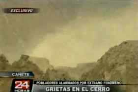 El fenómeno ocurre en el distrito de Zuñiga, Cañete donde alarmados vecinos filmaron unas grietas que aparecieron en forma súbita en esa zona, donde se ve polvo salir de las grietas y de un cerro.