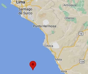 30 km al suroeste del distrito de Ancón, provincia de Lima, departamento de Lima, con hipocentro a 56 kilómetros de profundidad. En Ancón se sintió con intensidad de nivel III-IV.
