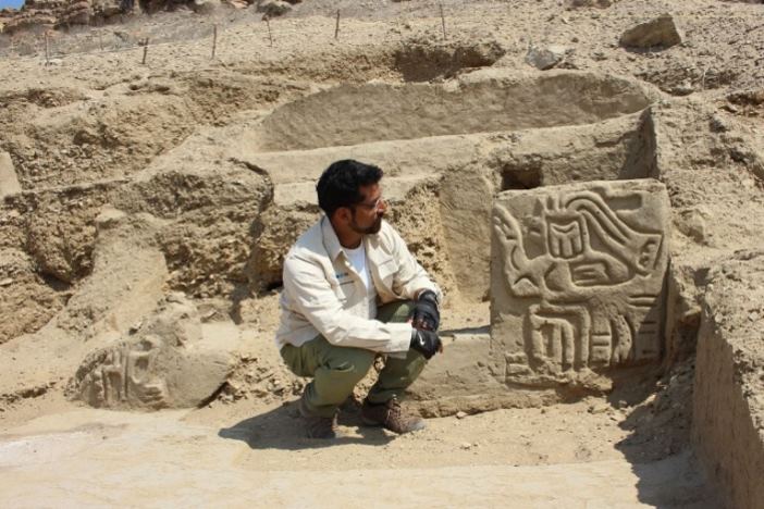 La estructura parece haber sido diseñada como un teatro, explica Muro, con una plataforma en forma de escenario y una escalera que conduce a lo que probablemente era una plaza abierta. A ambos lados de la escalera, el equipo encontró relieves tallados que representan una criatura con cuerpo humano, cabeza de pájaro y extremidades de reptil. “Esta criatura híbrida en la fachada del templo parece ser un predecesor de figuras en la iconografía de Chavín”, dice Muro. “A pesar de que estos dos pueblos están muy distantes cronológicamente, las imágenes parecen ser una expresión de una misma religión”.