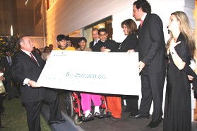 La ministra de Comercio Exterior y Turismo, Mercedes Araoz, hizo entrega al Hermano José Yanaqué, Representante del Hogar Clínica San Juan de Dios, un cheque por la suma de S/. 250 mil, obtenido por la venta de un reloj fabricado por la reconocida empresa relojera Audemars Piguet a solicitud de Aldo & Co, su representante exclusivo en nuestro país.
