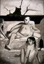 Hay dibujos muy bien expresados en este libro antologador de versos e imágenes. Como el de José Carlos Tássara en «Los amantes», o “La conciencia” de Javier Bellido. Pero lo más significativo es el trazo o apunte “Hemingay y sus días de verano” de Claudia Pinto. Muy significativa para expresar el Eros y el Tánatos que agobió al escritor en vida hasta su suicidio.