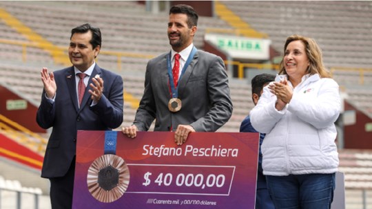 El Estado entregó los Laureles Deportivos del Perú, en el grado de Gran Oficial, al deportista de vela, Stefano Peschiera, por ganar la medalla de bronce en los Juegos Olímpicos París 2024, en ceremonia realizada en el Estadio Nacional.