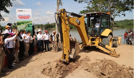 El ministro de Transportes y Comunicaciones (MTC), Raúl Pérez Reyes, lideró el inicio de las obras para la construcción del puente Tarata, un importante proyecto vial sobre el río Huallaga que la población de Pajarillo y Juanjuí había esperado por más de 30 años, y que este Gobierno logró destrabar.