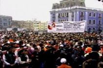 En nutrida marcha, más de 20 mil trabajadores de construcción civil se congregaron en la Plaza Dos de Mayo, desde donde marcharon hacia el Congreso de la República para entregar su pliego de reclamos.