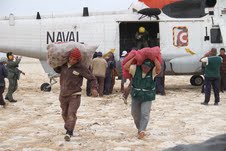 A requerimiento del Ministerio de Agricultura la Marina de Guerra del Perú activó el plan de auxilio helitransportado llevando alrededor de 7 toneladas de víveres secos y agua a 495 trabajadores que realizan trabajos relacionados a la extracción del guano en los campamentos en las Islas Chincha.
