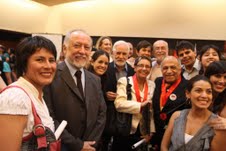 Por otro lado, resaltó la labor de la Municipalidad de Lima y del Ministerio de Cultura al organizar las diferentes actividades que forman parte de la Semana de Celebraciones del Día Mundial del Teatro 2012, y reconoció la labor de Tomás Temoche, exdirector de la Asociación Cultural Yawar, como impulsor del teatro independiente que se formó en Lima desde la década del 50.