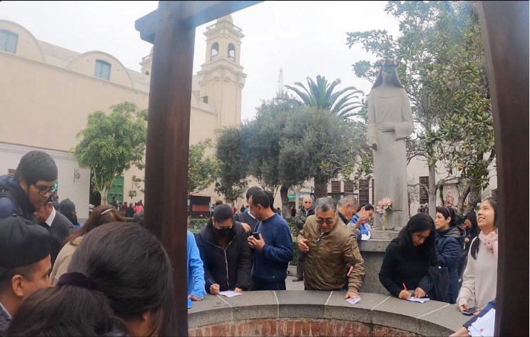 Desde la madrugada hasta la noche, miles de católicos formaron cola para visitar el santuario de Santa Rosa de Lima en la avenida Tacna, para recorrer el edificio virreinal y dejar sus cartas en el pozo de los favores.
