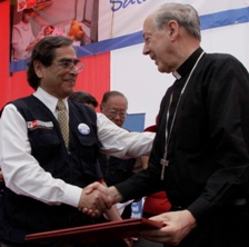 El ministro de Salud, Óscar Ugarte Ubilluz, y el cardenal de Lima, Mons. Juan Luis Cipriani Thorne, arzobispo de Lima y primado del Perú, firmaron un convenio marco para la atención de salud, mediante el cual el Estado asumirá la conducción de un establecimiento médico cedido por la institución eclesial que beneficiará a 180 mil habitantes del lugar.