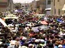 Una compacta muchedumbre acompañó hoy el cortejo fúnebre que conducía el ataúd con el cuerpo de Ciro Castillo Rojo desde el velatorio del barrio IV Centenario de Arequipa hasta la iglesia del Pilar.