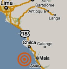 El epicentro del temblor, ocurrido a las 13:38 horas, se ubicó a 27 kilómetros al suroeste de Chilca, departamento de Lima, con hipocentro a 42 kilómetros de profundidad, según informa el Instituto Geofísico del Perú.